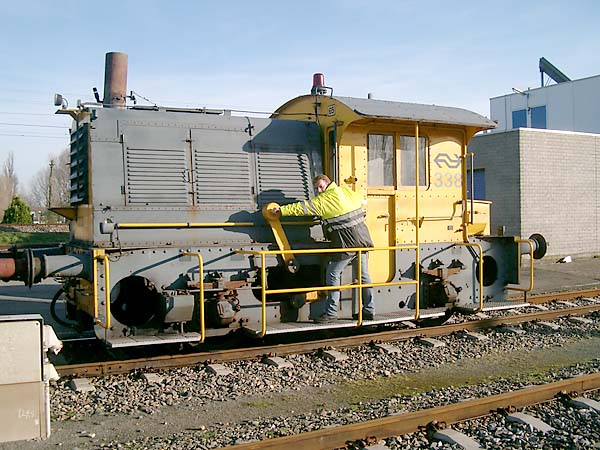Er reed daar ook nog een rooie trein voorbij. Jort klauterde direct de achterste cabine in en pakte er wat weg. Ik weet niet precies waar het over gaat, maar hij zei zoiets als "Van die knalseinen gaan we nog een hoop plezier hebben onder de kap..."! Nou, zoals je ziet was het een leerzaam dagje uit met de stichting. Ik kan iedereen zo'n excursie aanbevelen, dus ook jou ! Mocht je nog vragen hebben dan hoor ik het wel. Hartelijke groet, ook namens Jort. Doej, Iwan |