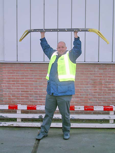 We hebben van een monteur geleerd hoe we voortaan de beugels plat moeten leggen. Jort en ik mochten allebei een keer oefenen.