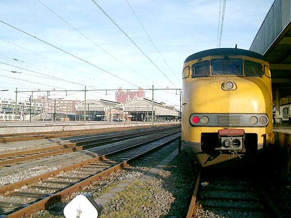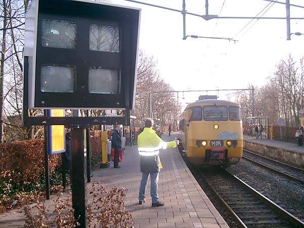 Jort besloot om maar te gaan liften met de trein, maar ik had meer oog voor Tom & Jerry op kanaal 2 van de TV's. 't Is toch niet te geloven welke luxe de reizigers wordt geboden als ze op het perron staan te wachten op hun trein ?!?