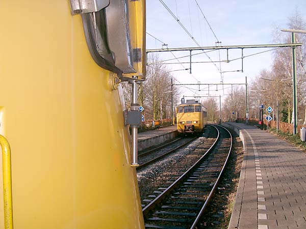 Op de terugweg naar het station zagen we dat koperdieven een stuk bovenleiding hadden gestolen. Als je goed kijkt zie je dat er 25 meter ontbreekt. Ongelofelijk dat de machinisten daar nooit melding van hebben gemaakt.