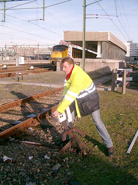 Als je straks een treintje kwijt bent komt dat wellicht doordat Jort het handwissel niet goed heeft gelegd. Hij zou wel even stoer demonstreren, maar nu is het in z'n rug geschoten en zit hij voorlopig ziek thuis. Je snapt wel dat ik het wissel niet meer heb aangeraakt.